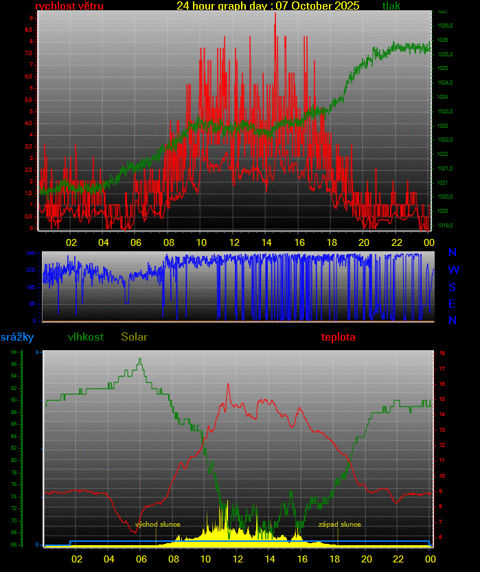 max. poryv větru = 17.0 m/s od 338°(NNW) 23 19:42